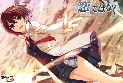 This is the debut title by Shangrila Smart. There are two protagonists: Norifumi is a guy who has been taking pictures since he was small, and Yumi has been working as a model. Instead of a cast of heroines, this game rather follows a story told from both of their perspectives. Even though the title suggests that it isn’t about love, it tells a drama of adolescence set on the solitary island of Toshima. Their childhood friend Tasuku had wished that they can film a movie of their lives up to their graduation. Spending Christmas with everyone, a fateful Valentine’s Day, love and friendship… everything is captured by their pictures. But not much time remains until their graduation when they will go their separate ways.